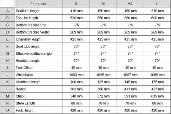 S: 410mm / M: 450mm / ML: 480mm / L: 510mm / XL: 540mm
